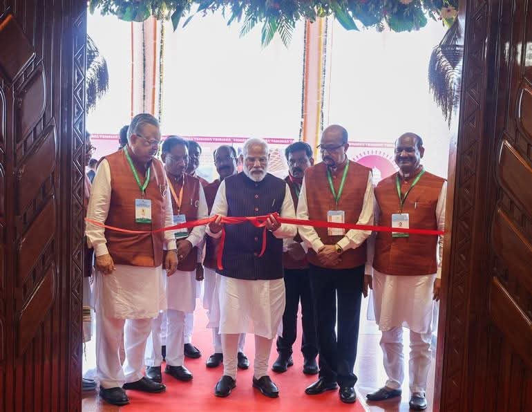 मैं जब इस भवन को देख रहा था, तो मुझे बस्तर आर्ट की सुंदर झलक दिखाई दी। मुझे याद है, कुछ महीने पहले थाईलैंड के प्रधानमंत्री जी को मैंने यही बस्तर आर्ट भेंट की थी, बस्तर की ये कला हमारी सृजनशीलता और सांस्कृतिक शक्ति का प्रतीक है।
