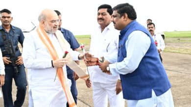 गृह मंत्री अमित शाह का एयरपोर्ट में शिक्षा मंत्री गजेन्द्र यादव ने किया आत्मीय अभिनंदन