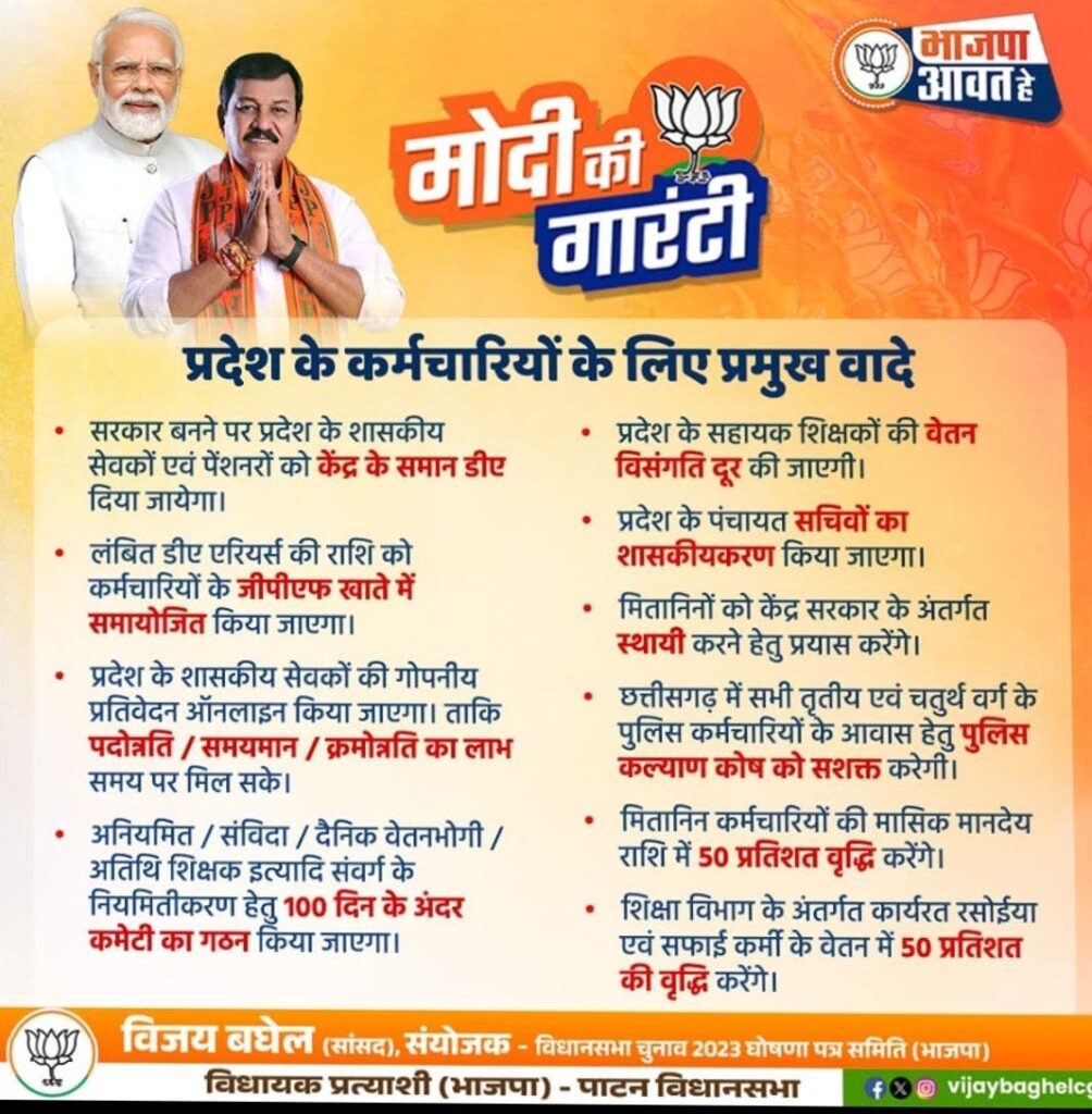 प्रदेश के पौने चार लाख कर्मचारियों को क्या मिला चिंतन का विषय है ! सरकार मोदी की गारंटी के अपने ही वादे को पूरा नहीं कर रही है , महंगाई भत्ते के लंबित एरियर का भुगतान कब होगा ? कैसलेश चिकित्सा योजना अच्छी लेकिन बाकी वादों पर भी ध्यान देना चाहिए था।