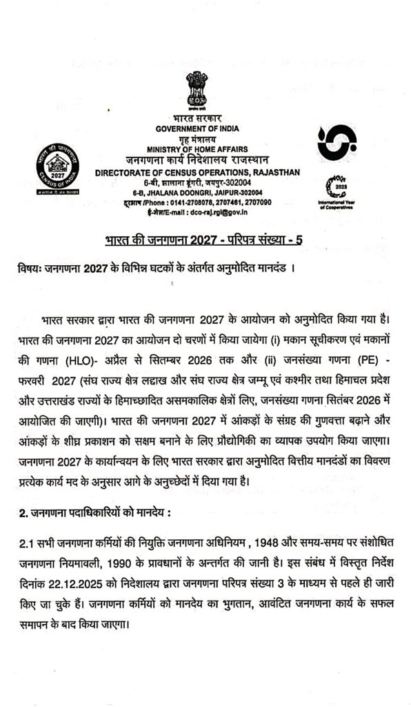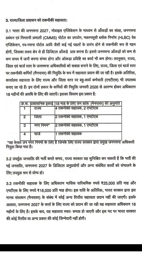 छत्तीसगढ़ में जनगणना 2027 में लगे प्रगणक और सुपरवाइजर को मिलेगा 25000 और 35000 मानदेय प्रशिक्षण भत्ता भी निर्धारित भारत सरकार ने जारी किया दिशा निर्देश