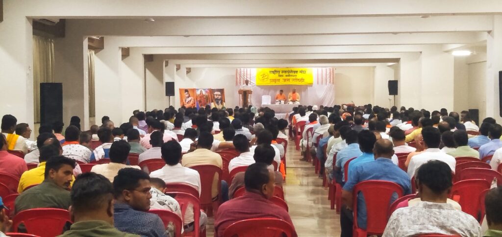 राष्ट्रीय स्वयंसेवक संघ के शताब्दी वर्ष के उपलक्ष्य में आयोजित कार्यक्रमों की श्रृंखला के अंतर्गत, कवर्धा नगर के कुर्मी क्षत्रिय छात्रावास सभागार, में 8 अप्रैल 2026 को ‘प्रमुख जनगोष्ठी’ का गरिमामय आयोजन किया गया। कार्यक्रम में मुख्य वक्ता के रूप में उपस्थित क्षेत्र प्रचारक (मध्य क्षेत्र) स्वप्निल कुलकर्णी जी ने कहा कि संघ का कार्य 1925से शुरू होकर आज हम शताब्दी वर्ष में है किसी भी संगठन के लिए 100 वर्ष पुरा कर पाना कठिन है।संघ ने शताब्दी वर्ष में पंच परिवर्तन का कार्यक्रम निर्धारित किया है। ये पांच परिवर्तन हैं – स्व का बोध तथा स्वदेशी का उपयोग, कुटुंब प्रबोधन, सामाजिक समरसता, पर्यावरण संरक्षण और नागरिक कर्त्तव्य बोध। पंच परिवर्तन के माध्यम से समाज और राष्ट्र सशक्त होगा। पंच परिवर्तन के माध्यम से ही आत्मनिर्भर भारत की संकल्पना की जा सकती है।