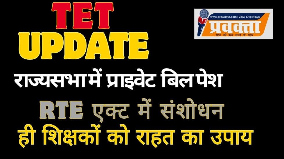 सेवारत शिक्षकों को टीईटी परीक्षा से छूट प्रदान करने शिक्षा के अधिकार अधिनियम में संशोधन के लिए राज्यसभा में प्राइवेट बिल पेश