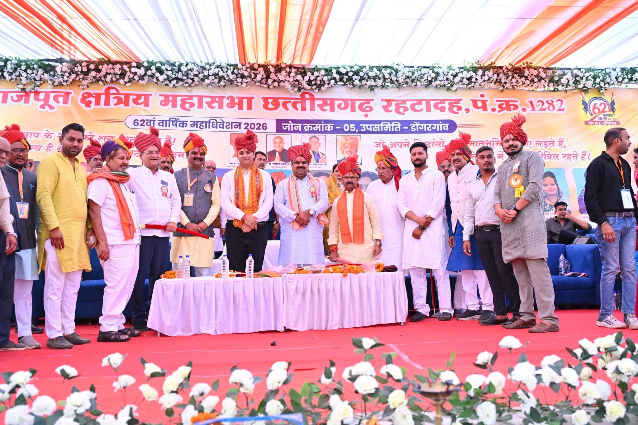 राजपूत क्षत्रिय महासभा छत्तीसगढ़ का दो दिवसीय 62 वां वार्षिक महाधिवेशन राजनांदगांव जोन क्रमांक 5 के उप समिति डोंगरगांव में ऐतिहासिक रूप से, अति उल्लासपूर्वक, गरिमामई रूप से संपन्न हुआ।। अधिवेशन कार्यक्रम में मुख्य अतिथि स्कूल शिक्षा मंत्री एवं राजनांदगांव जिले के प्रभारी मंत्री माननीय गजेंद्र यादव जी द्वारा 30 लाख सहयोग राशि की घोषणा की गई । कार्यक्रम की अध्यक्षता महासभा के अध्यक्ष ठाकुर बजरंग सिंह बैस द्वारा किया गया । अति विशिष्ट अतिथि के रूप में राजनांदगांव के पूर्व सांसद मा. अभिषेक सिंह जी, हस्तशिल्प विकास कला बोर्ड की अध्यक्ष राज्य मंत्री दर्जा प्राप्त श्रीमती शालिनी राजपूत जी, राजनांदगांव भाजपा जिला अध्यक्ष माननीय कोमल राजपूत जी, डोंगरगांव के स्थानीय जिला पंचायत, जनपद सदस्य, नगर पालिका के अंजू त्रिपाठी जी उपस्थित रहे।। कार्यक्रम में महासभा के हमारे पूर्व अध्यक्ष एवं पूर्व विधायक भूपेंद्र सिंह चौहान जी, ठाकुर उजियार सिंह पवार जी, ठाकुर होरी सिंह डौड़ जी की उपस्थिति कार्यक्रम का गौरव बढ़ाया।। अधिवेशन स्थल मंच से सम्माननीय जनों के विचारों में यूजीसी बिल का विरोध तथा हमारे महासभा के संस्थापक सदस्यों की सराहना तथा केंद्रीय कार्यकारिणी निर्णय की पुस्तिका प्रकाशन एवं महासभा के लिए बहुत ही महती योजना भूमि क्रय के संबंध में चर्चा हुई।। राजपूत क्षत्रिय महासभा के प्रचार सचिव डॉ. जितेंद्र सिंह ठाकुर ने बताया की कार्यक्रम शांतिपूर्वक संपन्न हुआ।।