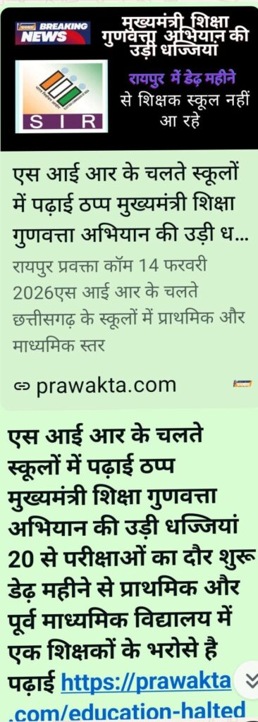 प्रवक्ता.कॉम ने एस आई आर के चलते स्कूलों में पढ़ाई ठप्प मुख्यमंत्री शिक्षा गुणवत्ता अभियान की उड़ी धज्जियां शीर्षक से समाचार के माध्यम से इस मामले को उठाते हुए इस वर्ष प्राथमिक और माध्यमिक स्कूल में पढ़ाई ठप्प होने की बात कही थी।