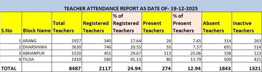 ई अटेंडेंस एप डाउनलोड कराने विभाग ने दिखाई सख्ती शिक्षक नहीं ले रहे हैं रूचि रायपुर जिले के 8503 शिक्षकों में 1599 ने ही किया ऐप पर रजिस्ट्रेशन डेटा लीक और प्राइवेसी की गारंटी कौन लेगा ?