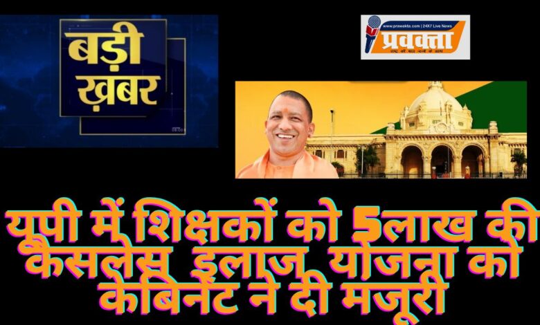 यूपी सरकार ने दी शिक्षकों के लिए पांच लाख तक कैशलेस इलाज को मंजूरी केबिनेट ने लिया निर्णय अनुदेशक और रसोइयों को भी मिलेगी योजना का लाभ